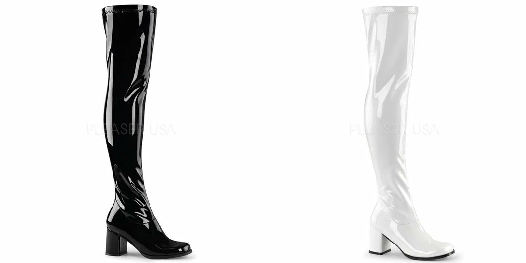 3″ (7.6cm) Block Heel Gogo Over-the-Knee Boot, Stretch Patent, Full-Length Inside Zip Closure