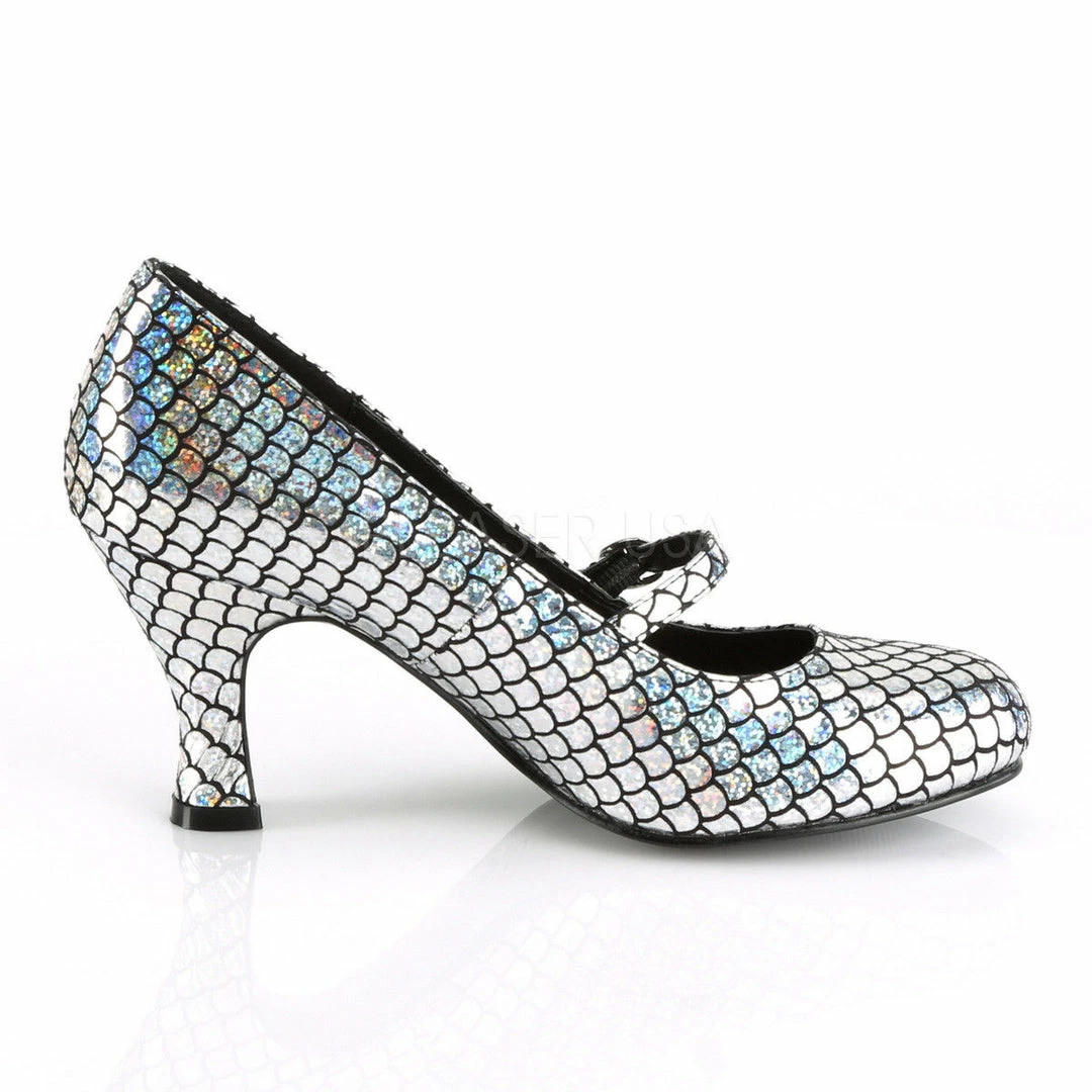 3″ (75mm) Heel Round Toe Maryjane Pump W/ Mermaid Scale Upper Design