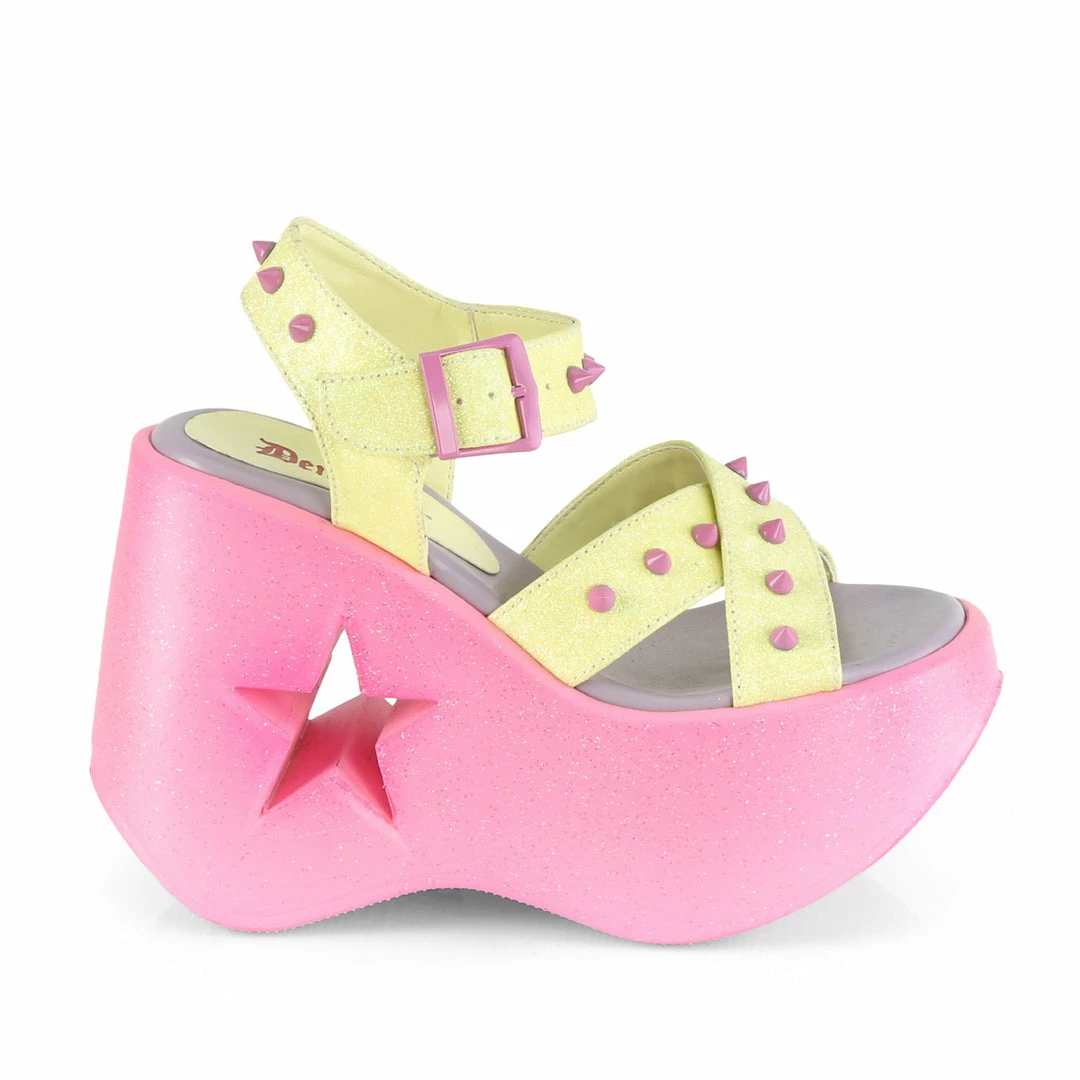 5″ (12.7cm) Star Cutout Platform Wedge Criss Cross Ankle Strap Sandal with Cone Spike Detail