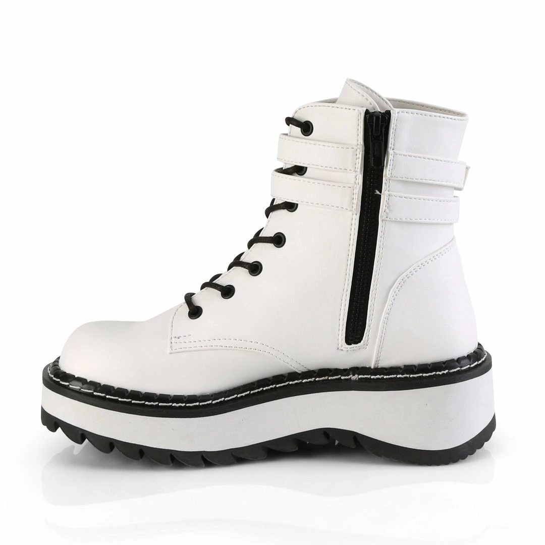 1 1/4″ (32mm) Platform Lace-Up Front Ankle Boot w/ Double Buckled Ankle Straps, Inside Zip Closure