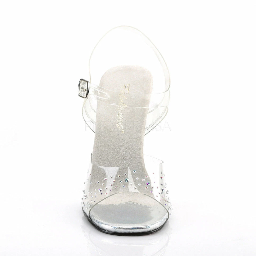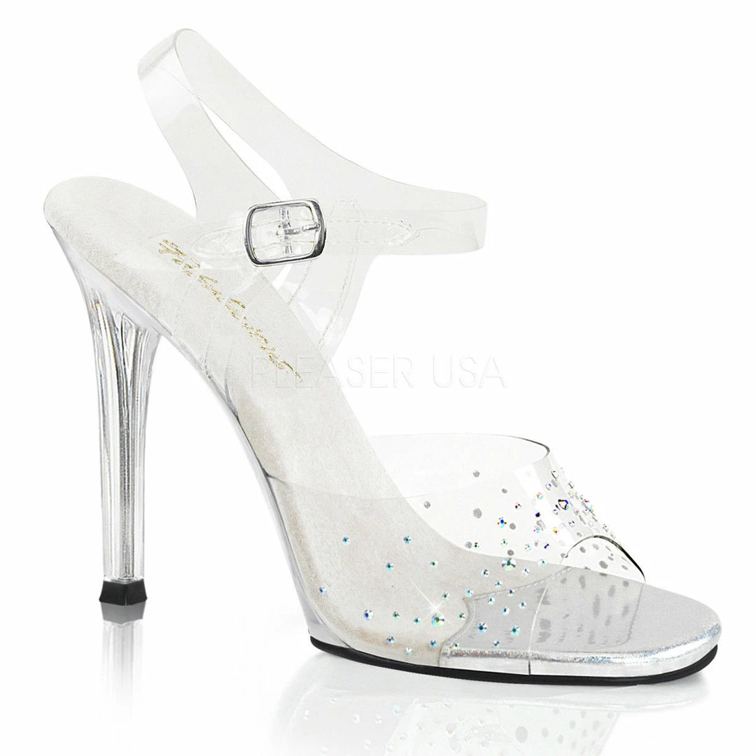 4 1/2″ (11.4cm) Heel Ankle Strap Sandal Featuring Multi Sized AB Rhinestones on Vamp