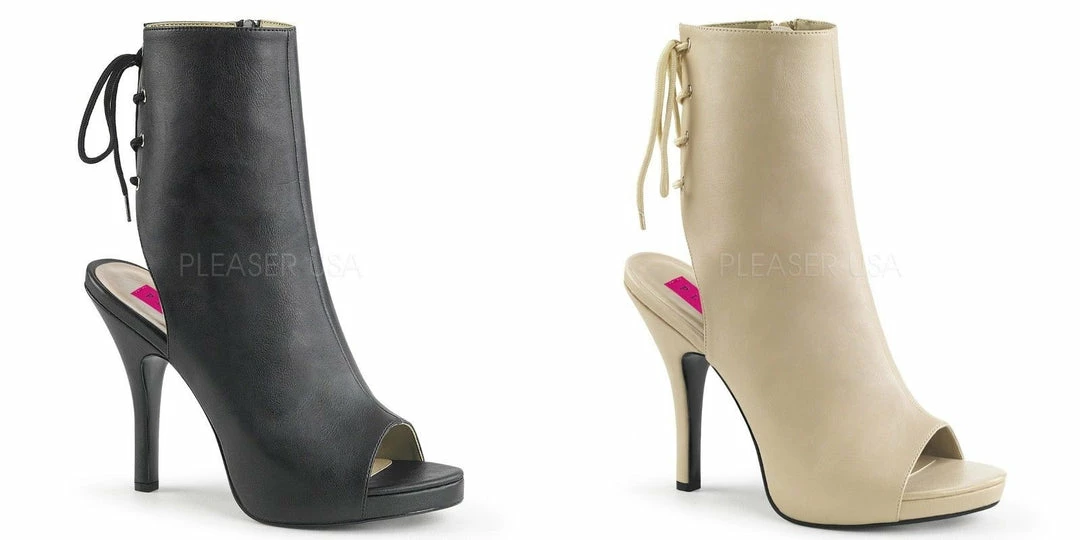 5″(12.7cm) Heel, 1/2″(1.3cm) Open Toe/Heel Back Lace-Up Ankle Boot, Inside Zip Closure