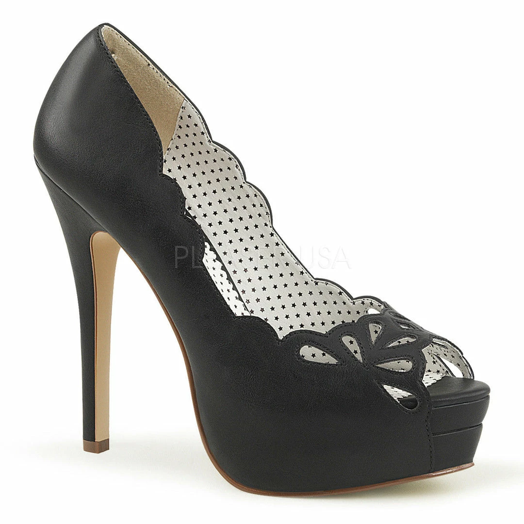 5 1/4″ (13.3cm) Heel, 1 1/2″(3.8cm) Platform Peep Toe Pump with Cut-Out Detail