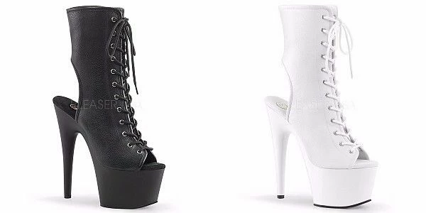 7″ (17.8cm) Stiletto Heel, 2 3/4″ (7cm) Platform Open Toe/Stiletto Heel Front Lace-Up Ankle Boot, Side Zip Closure