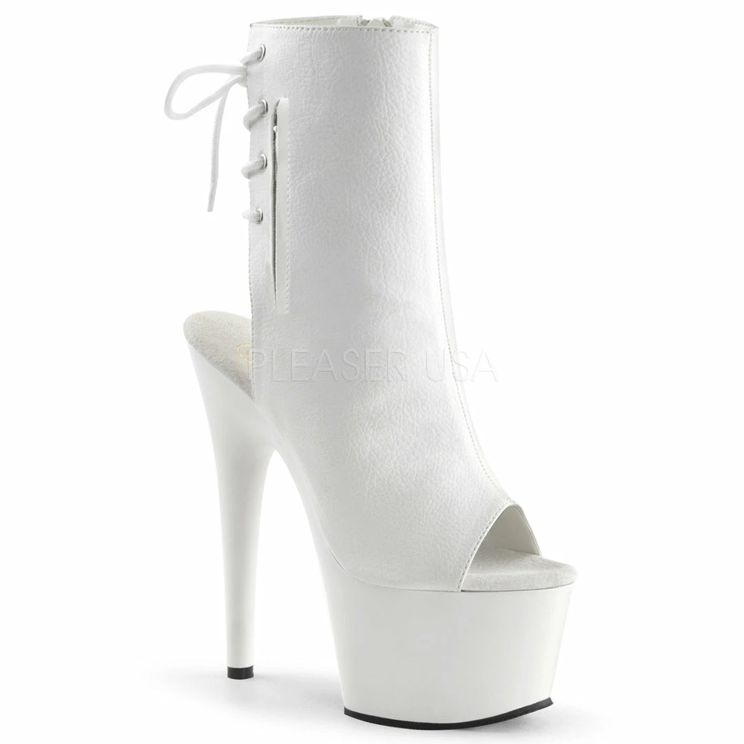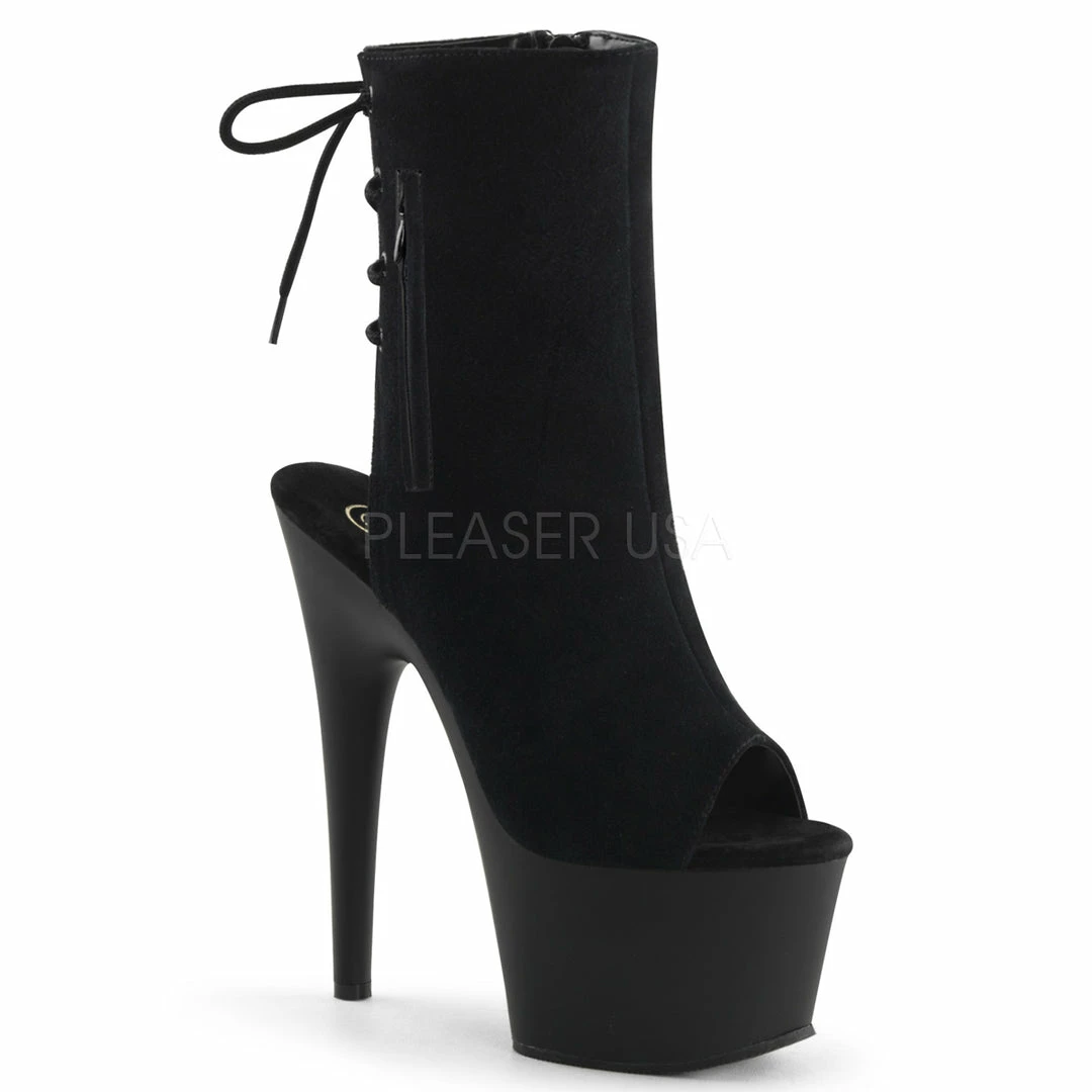 7″ (178mm) Heel, 2 3/4″ (70mm) Platform Open Toe/Heel Back Lace-Up Ankle Boot w/ Hidden Zip Pocket, Full Inside Zip Closure