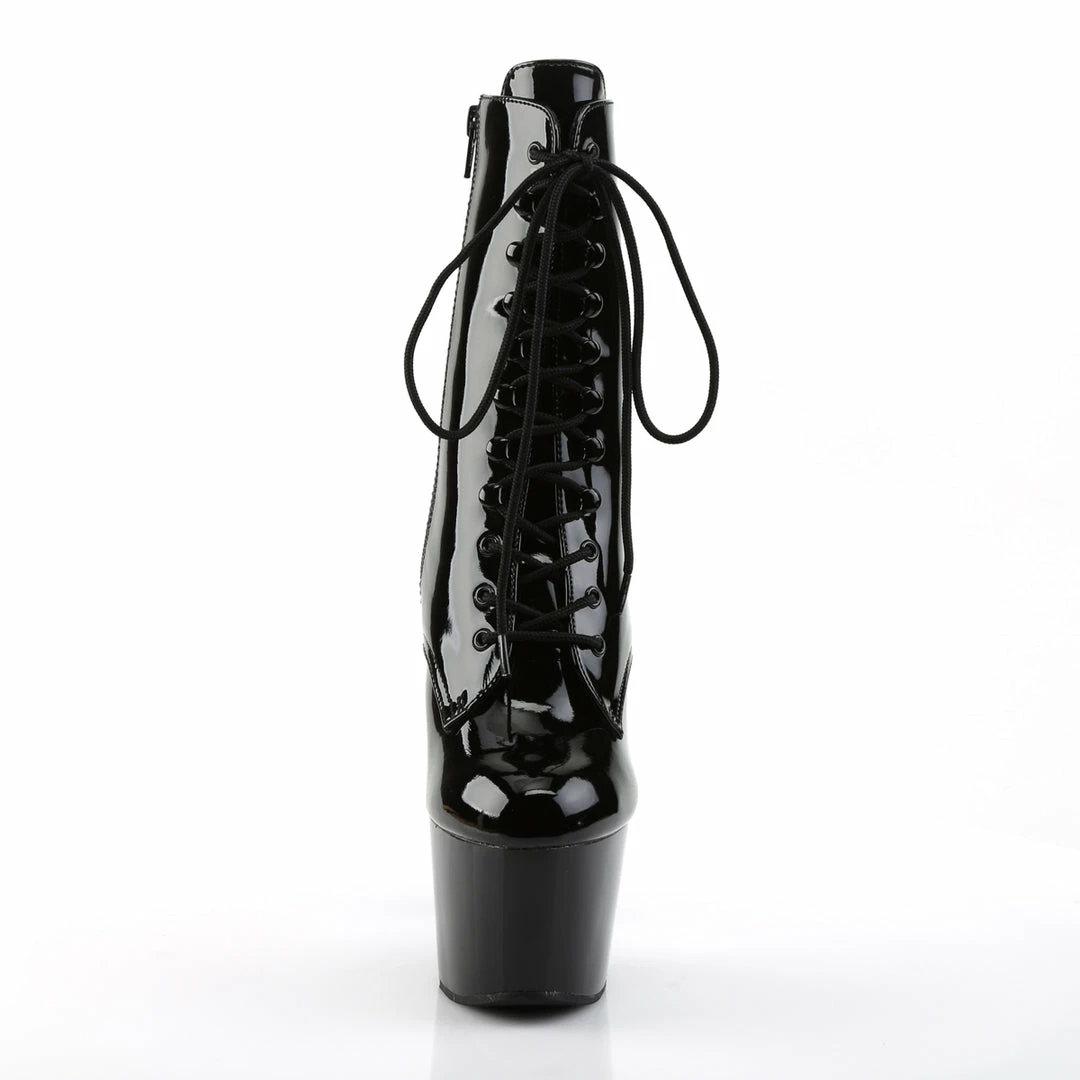 7″ (17.8cm) Stiletto Heel, 2 3/4″ (7cm) Platform Lace-Up Platform Ankle Boot, Full Inner Side Zipper