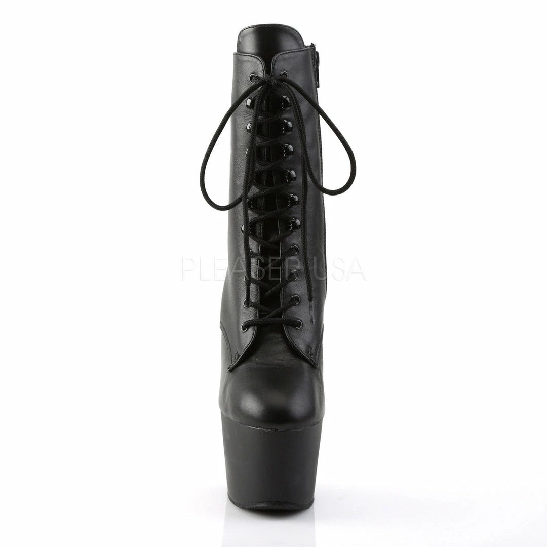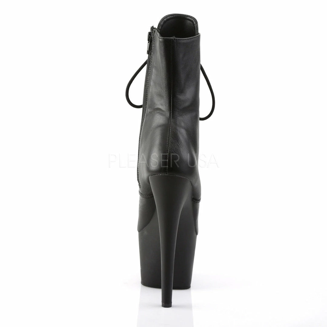 7″ (17.8cm) Stiletto Heel, 2 3/4″ (7cm) Platform Lace-Up Platform Ankle Boot, Full Inner Side Zipper