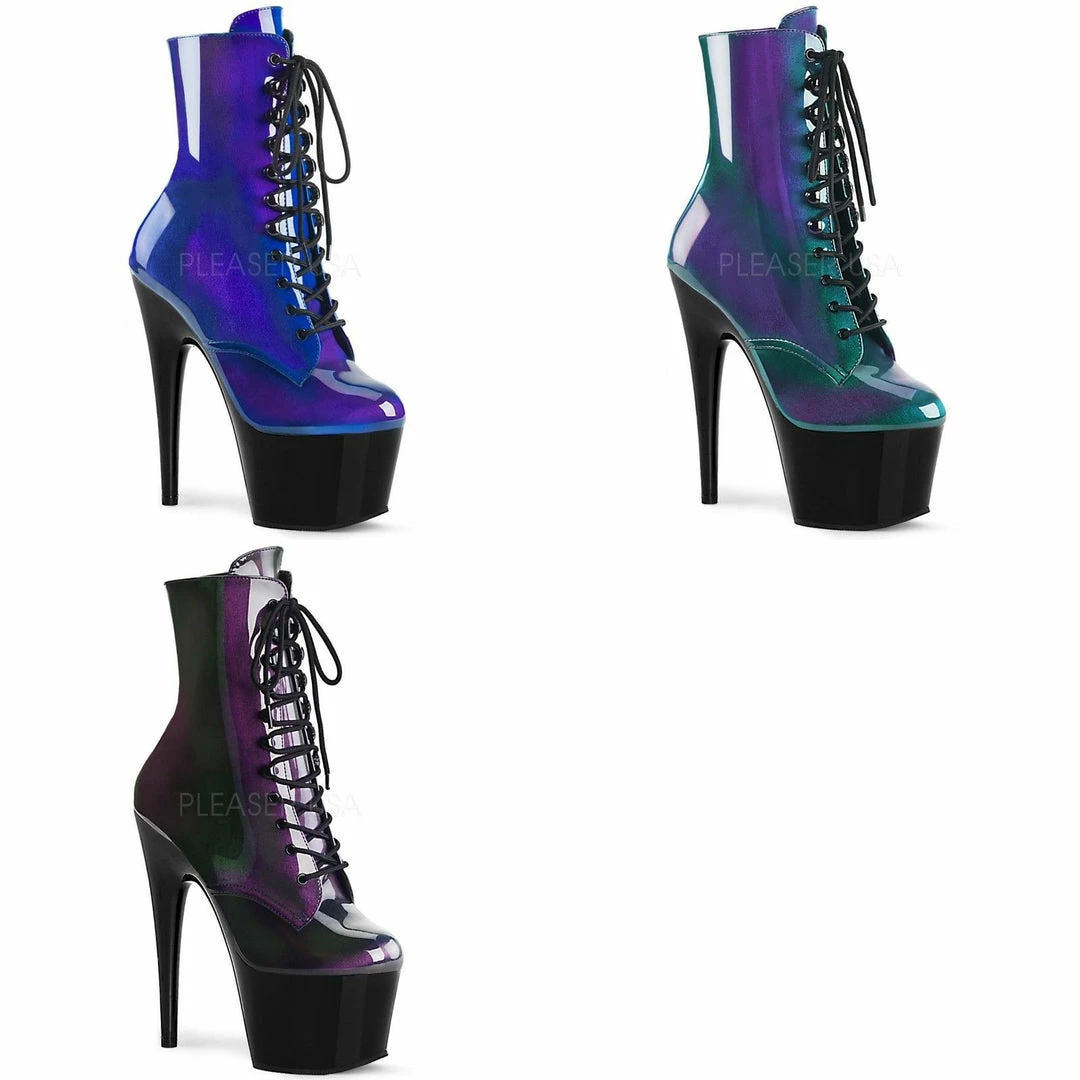7″ (178mm) Heel, 2 3/4″ (70mm) Platform Lace-Up Front Ankle Boot, Inside Zip Closure