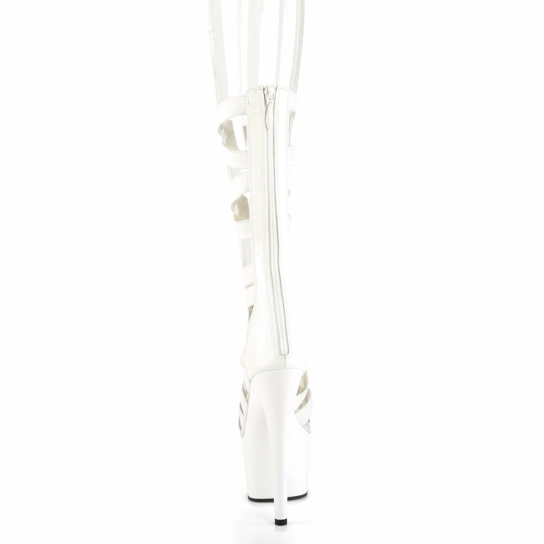 7″ (178mm) Heel, 2 3/4″ (70mm) Platform Close Back Criss Cross Mid-Calf Bootie Sandal with Elastic Straps, Back Zip Clousre