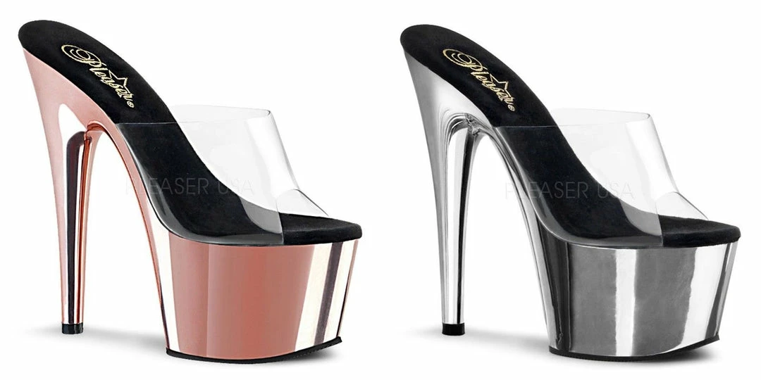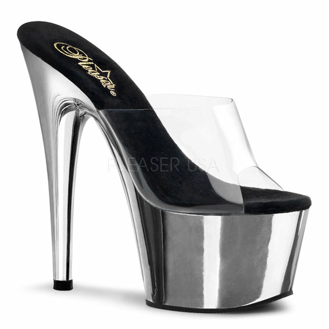 7″ (17.8cm) Stiletto Heel, 2 3/4″ (7cm) Platform Slide with Chrome Plated Bottom