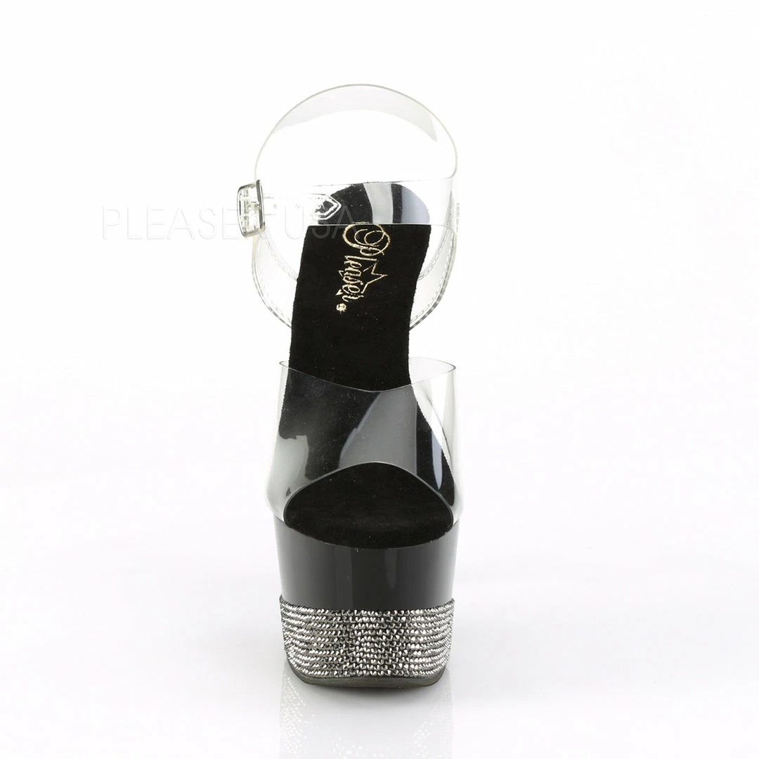 7″ (178mm) Heel, 2 3/4″ (70mm) Platform Ankle Strap Sandal Featuring Rhinestone Encrusted Platform