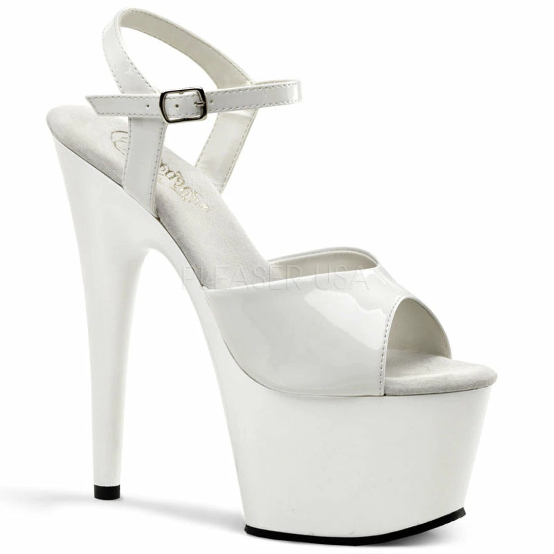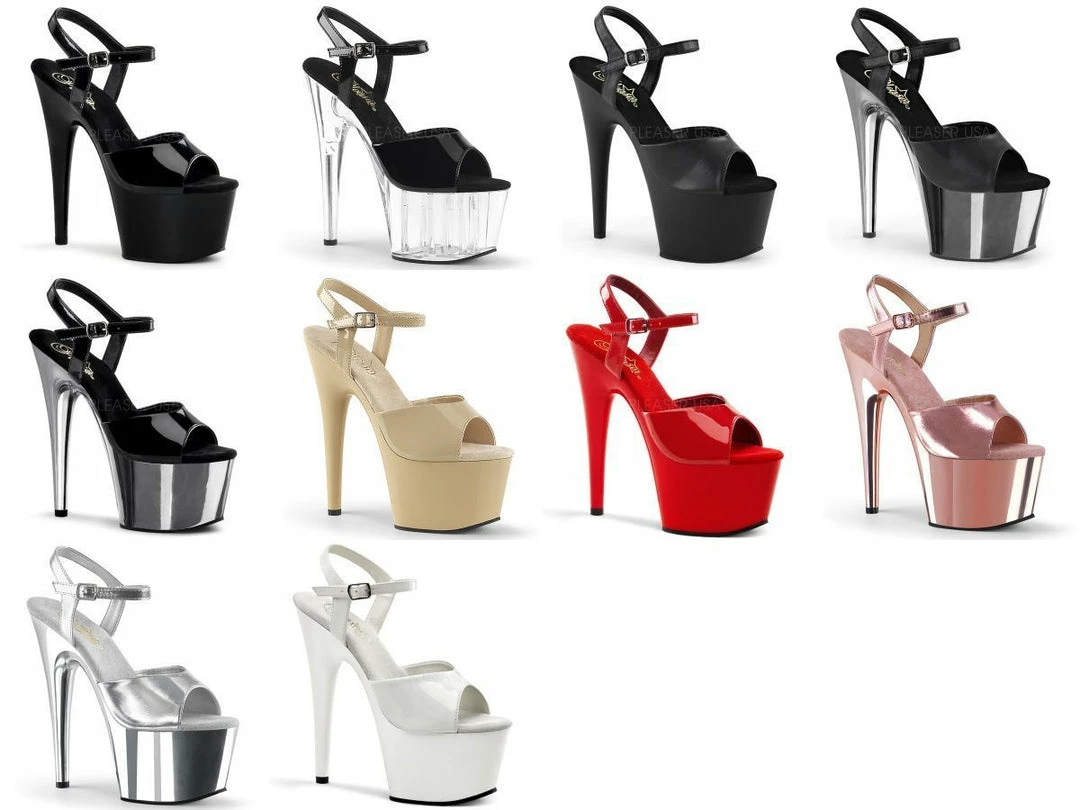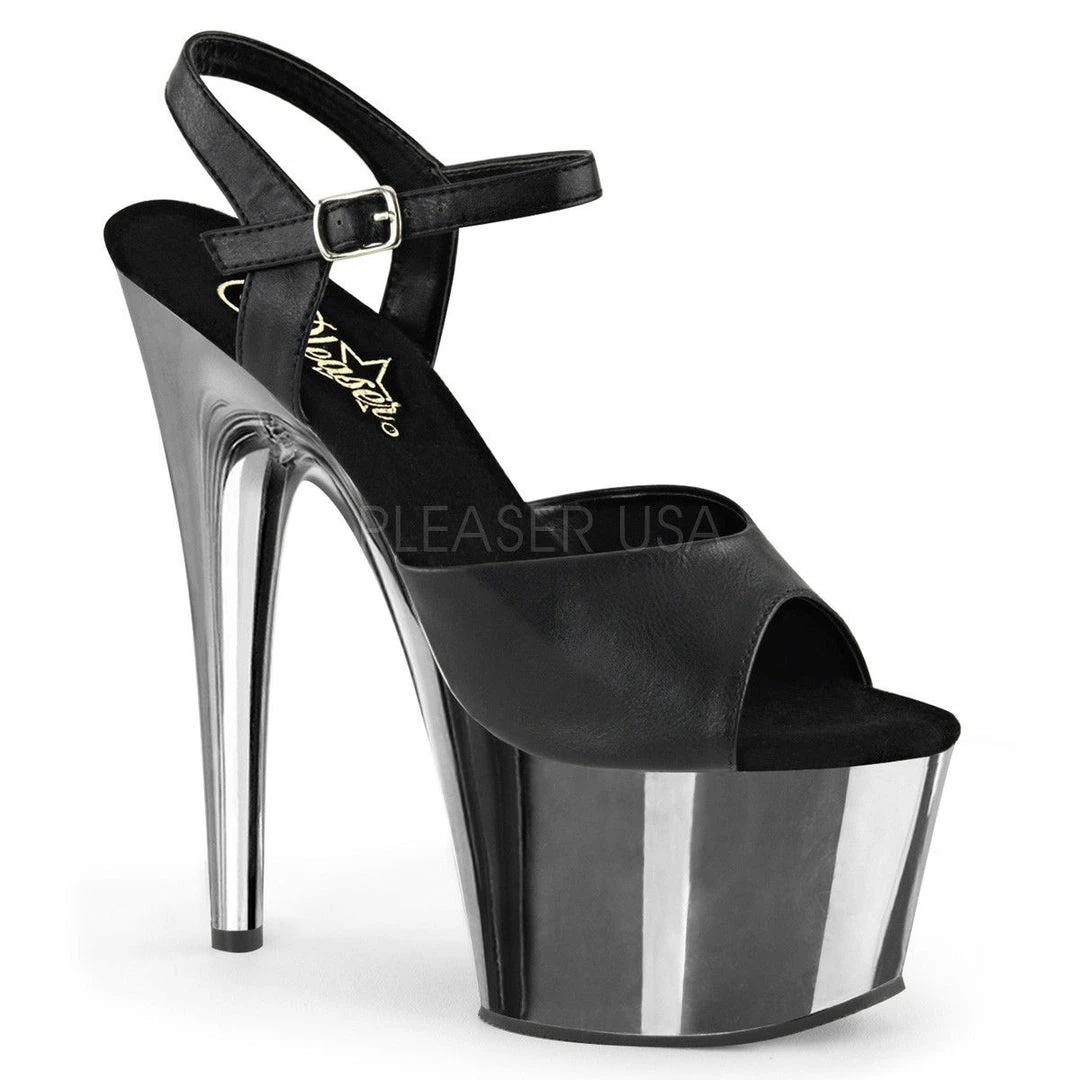 7″ (178mm) Heel, 2 3/4″ (70mm) Platform Ankle Strap Sandal w/ Chrome Plated Platform Bottom
