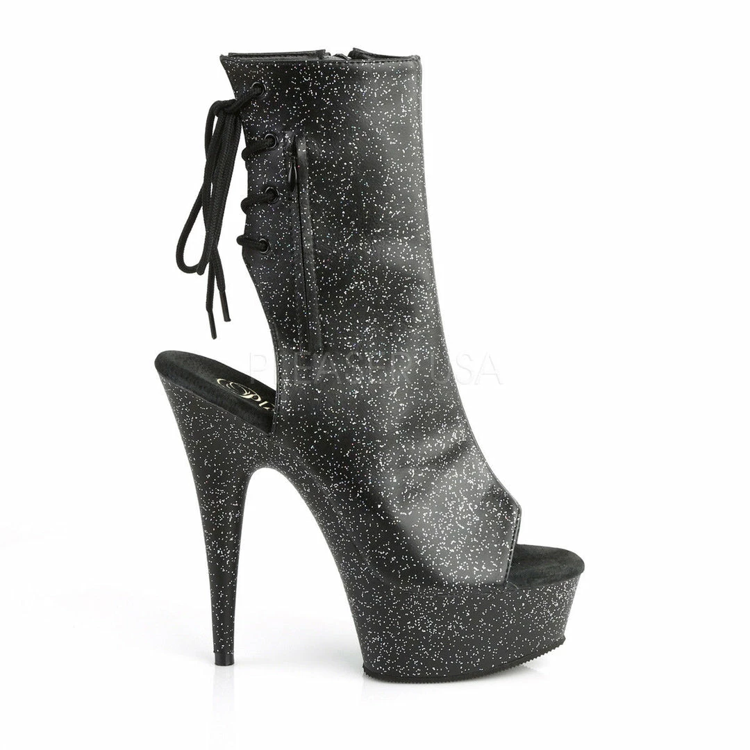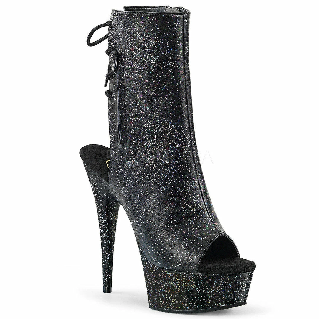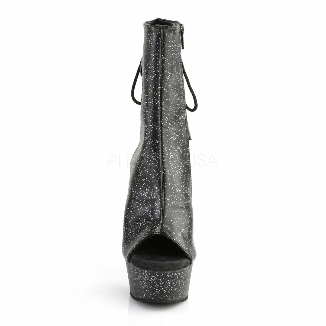 6″ (15.2cm) Stiletto Heel, 1 3/4″ (4.5cm) Platform Open Toe/Heel Ankle Boot Featuring Mini Iridescent Glitter on the Entire Upper & Platform, Inside Zip Closure