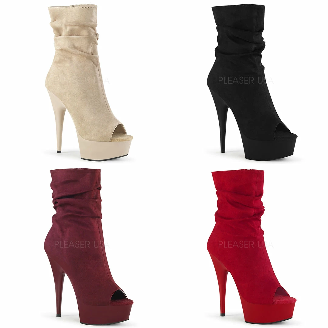 6″ (152mm) Heel, 1 3/4″ (45mm) Platform Open Toe Slouch Ankle Boot, Inside Zip Closure