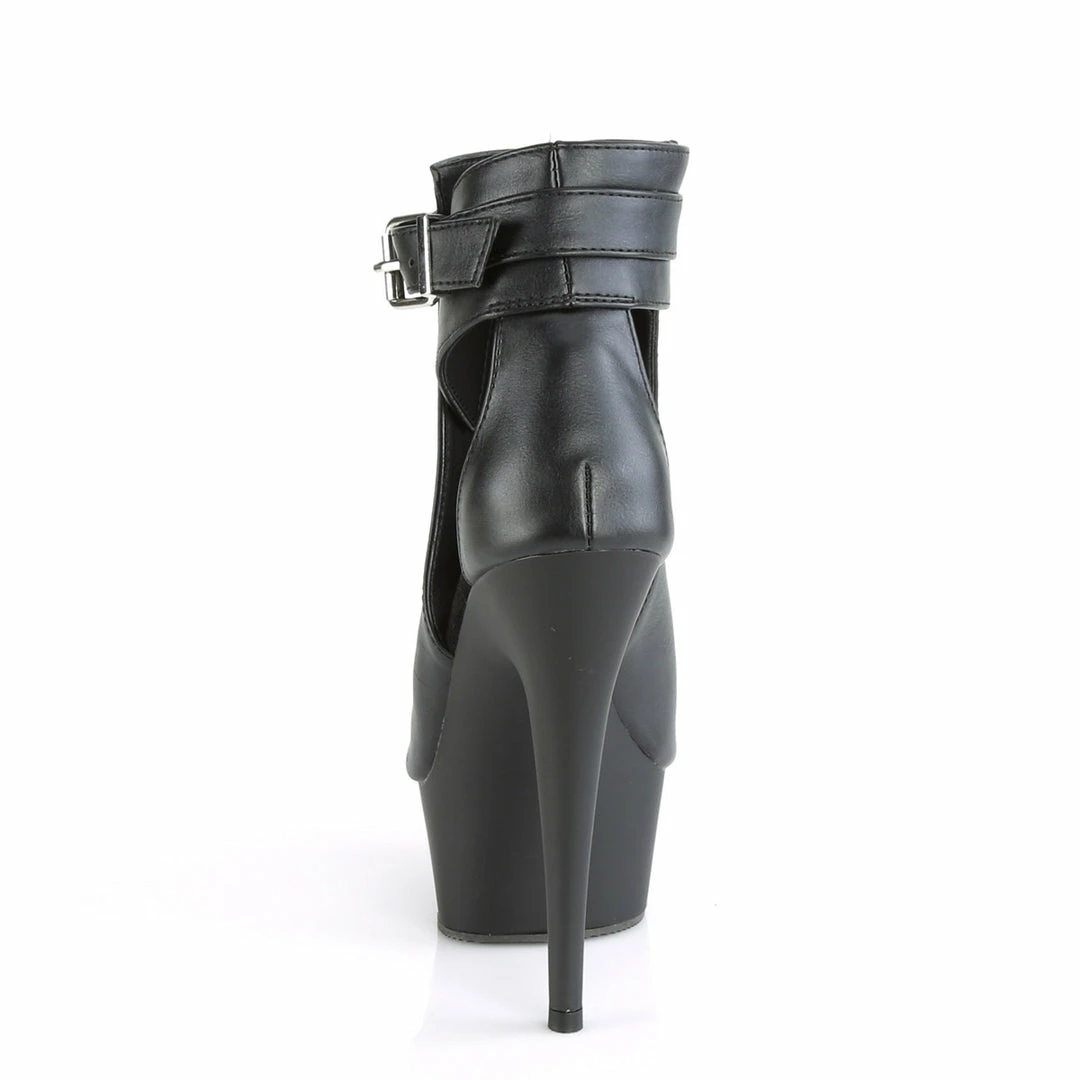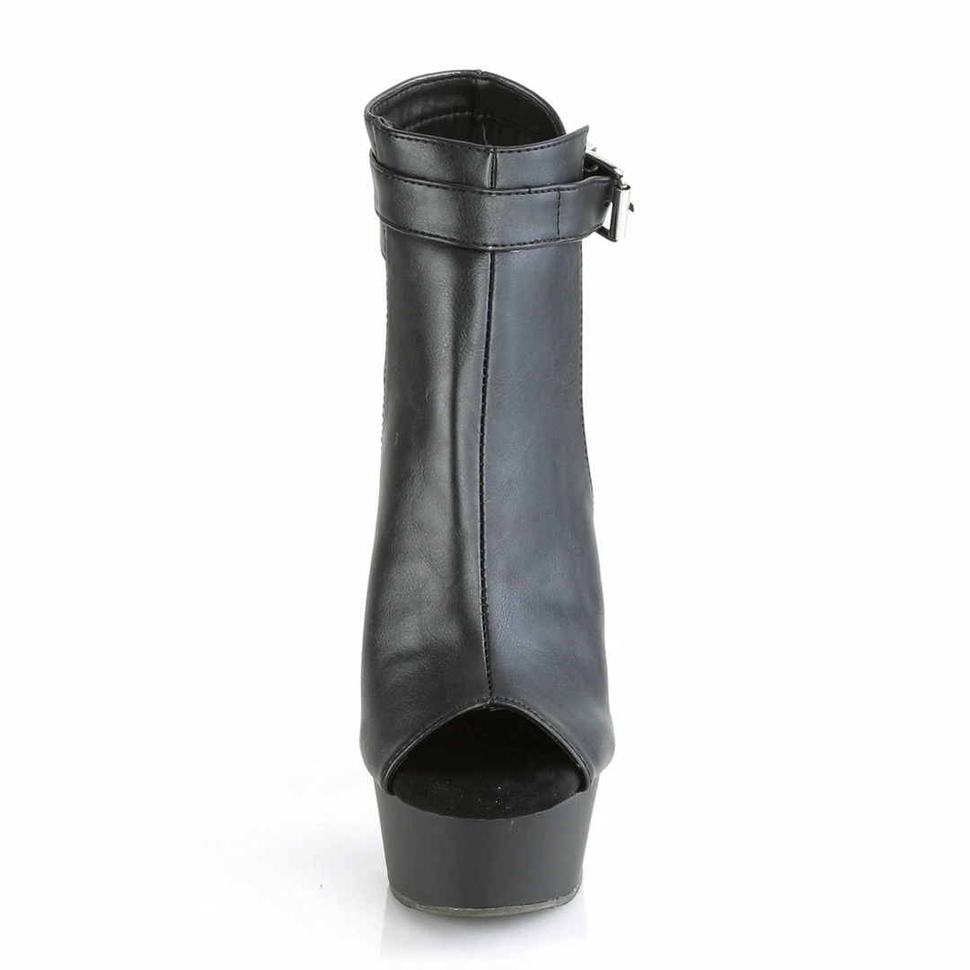 6″ (152mm) Heel, 1 3/4″ (45mm) Platform Peep Toe Close Back Ankle Bootie Sandal Featuring Buckle Ankle Strap Closure