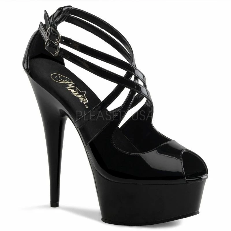 6″ (15.2cm) Stiletto Heel, 1 3/4″ (4.5cm) Platform Peep Toe Double Criss-Cross Ankle Strap Sandal