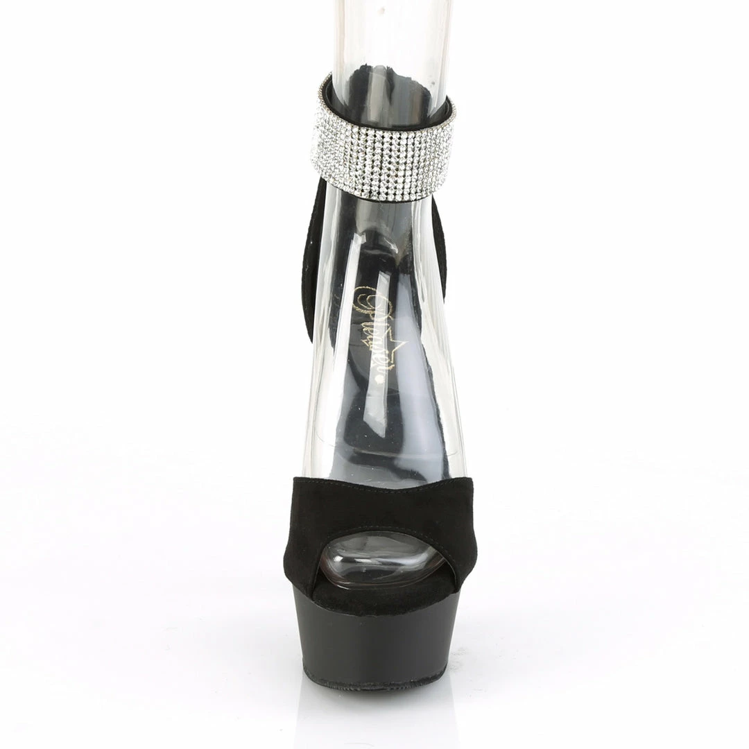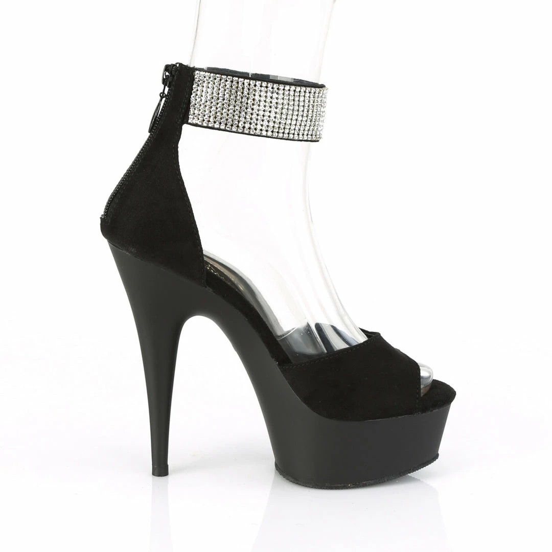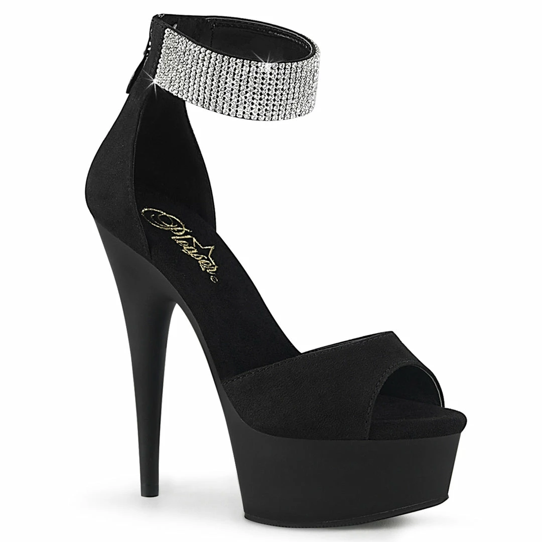 6″ (152mm) Heel, 1 3/4″ (45mm) Platform Open Toe d’Orsay Sandal Featuring Rhinestone Embellished Ankle Cuff, Back Zip Closure