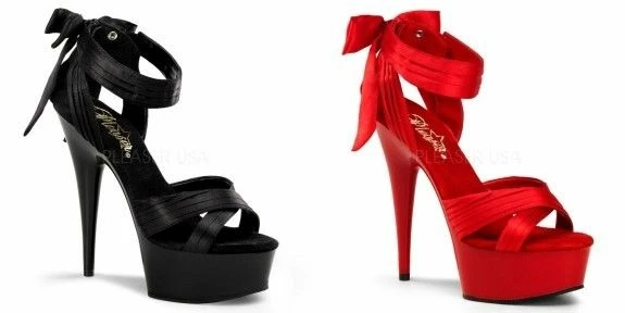 6″ (15.2cm) Stiletto Heel, 1 3/4″ (4.5cm) Platform Criss-Cross Pleated Straps Close Back Sandal with Bow on Heel, Back Zip