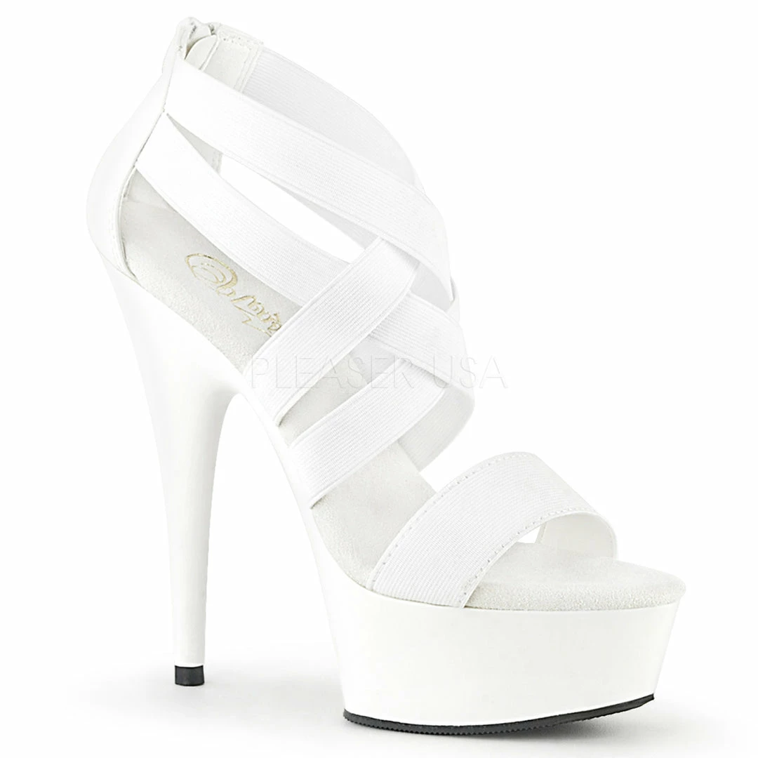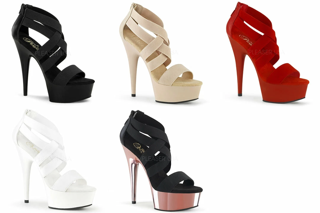 6″ (152mm) Heel, 1 3/4″ (45mm) Platform Criss Cross Sandal w/ Elastic Straps, Back Zip Closure