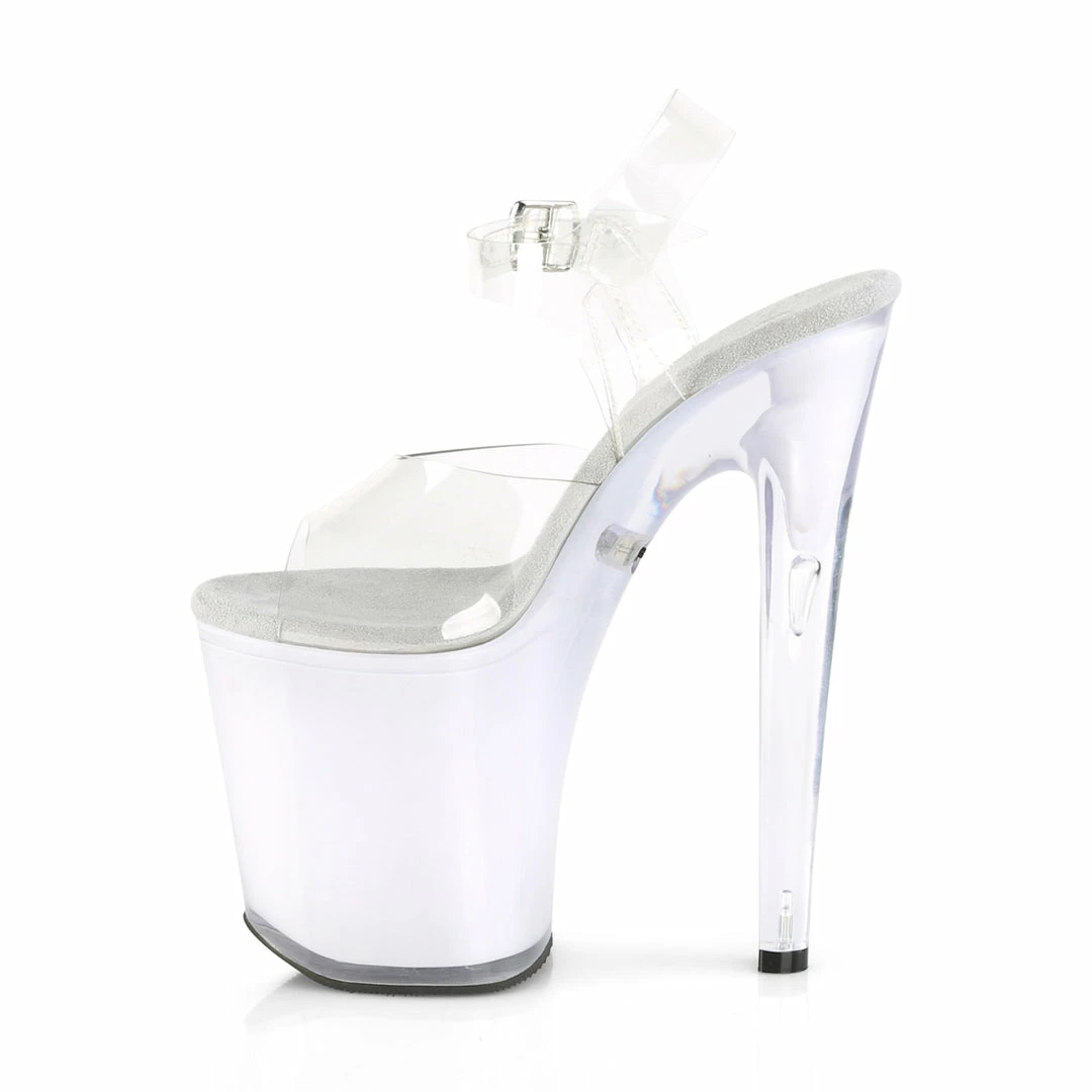 8″ (200mm) Heel, 4″ (100mm) Platform USB Chargeable LED Light-Up Ankle Strap Sandal w/ Multi Color Disco Lighting Effects in Various Patterns/Settings