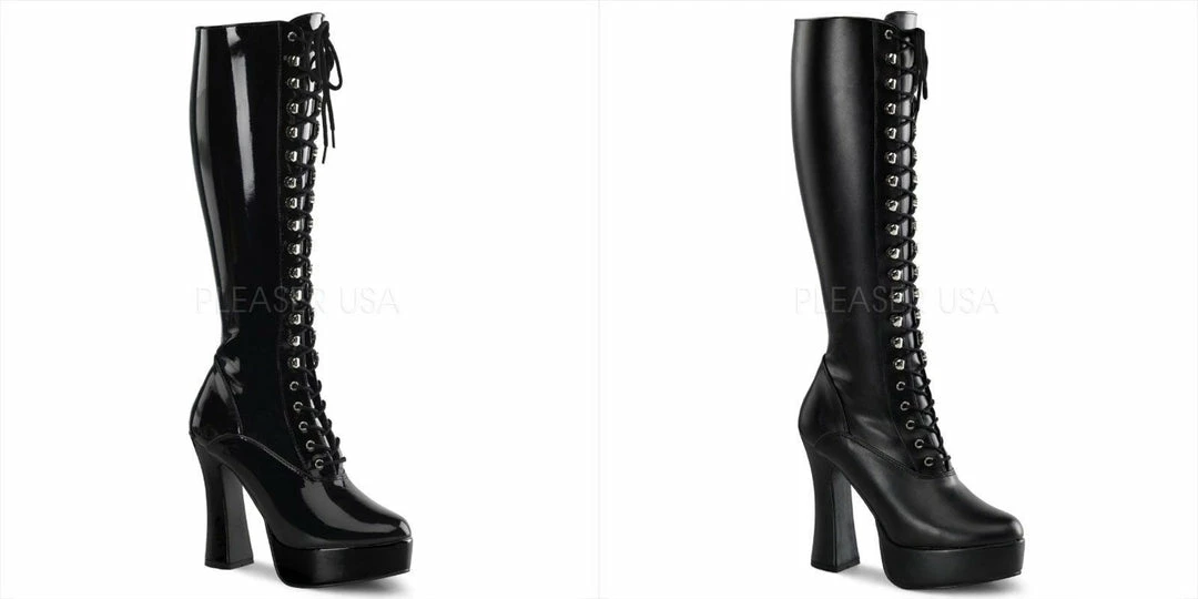 5″ (12.7cm) Stack Heel, 1 1/2″ (3.8cm) Platform Knee Boot with Lace Front Detail, Full Inner Side Zipper