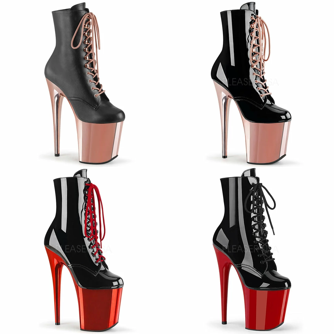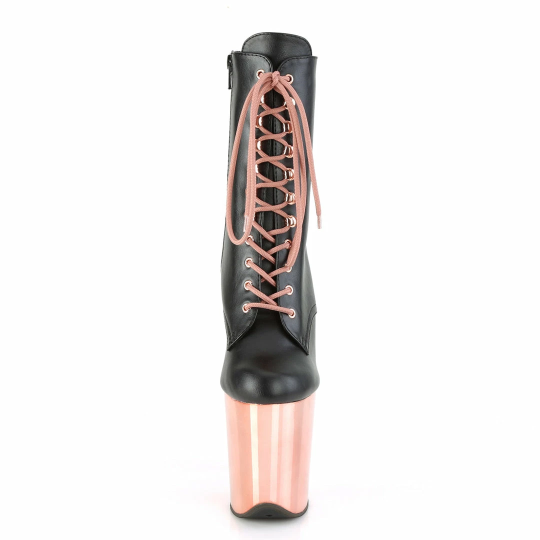 8″ (200mm) Heel, 4″ (100mm) Platform Lace-Up Front Ankle Boot Featuring Matching Glitter Inserts in the Platform Bottom, Inside Zip Closure