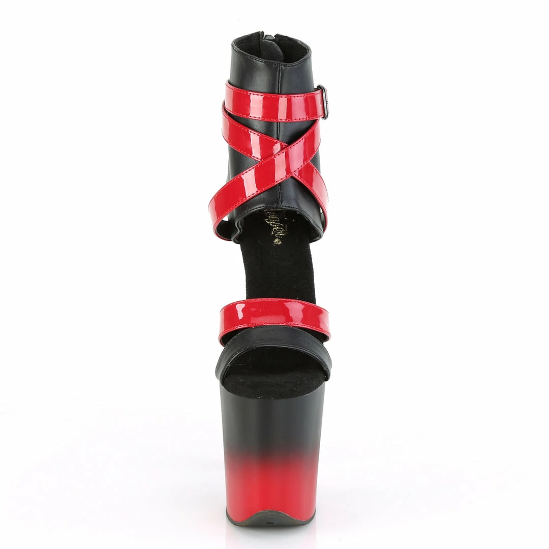 8″ (200mm) Heel, 4″ (100mm) Platform Two Tone Bootie Sandal w/Criss Cross Ankle Strap, Back Zip Closure