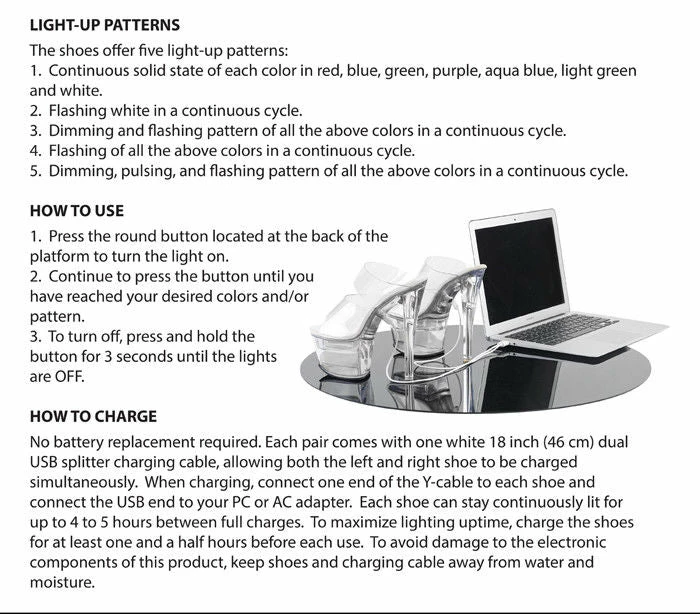 8″ (200mm) Heel, 4″ (100mm) Platform USB Chargeable LED Light-Up Front Lace-Up Ankle Boot w/ Multiple Static/ Changing Color Options & Light Settings