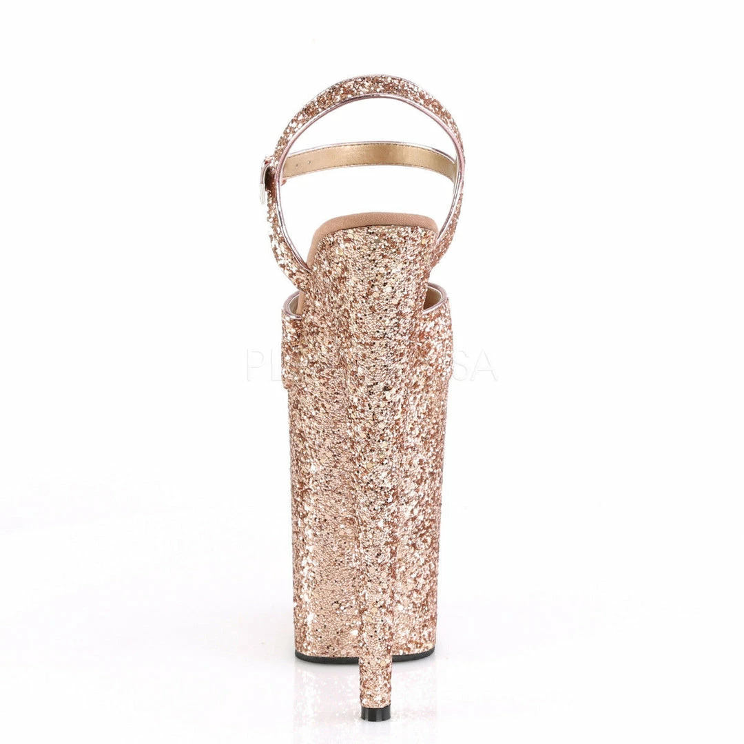 9″ (230mm) Heel, 5 1/4″ (135mm) Platform Glitter Ankle Strap Sandal