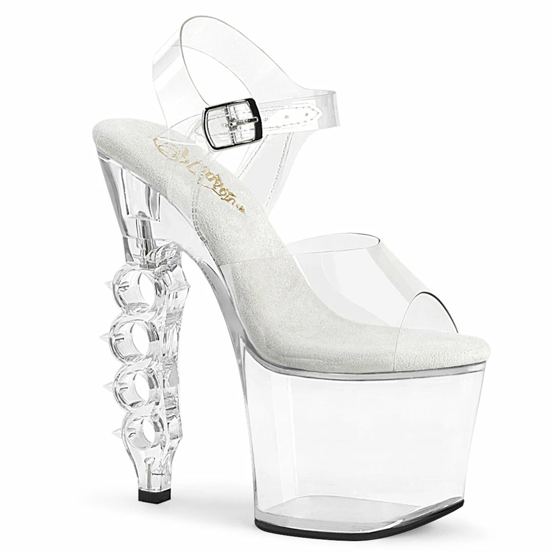 7″ (178mm) Heel, 3 1/4″ (83mm) Platform Ankle Strap Sandal Featuring Chrome Plated Brass Knuckles Heel