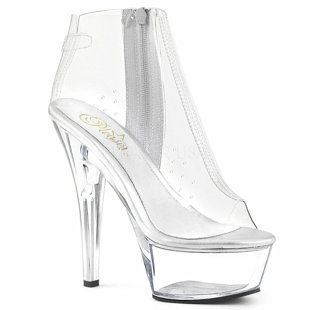 6″(152mm) Heel, 1 3/4″(44mm) Platform Open Toe Ankle Boot, Inside Zip Closure