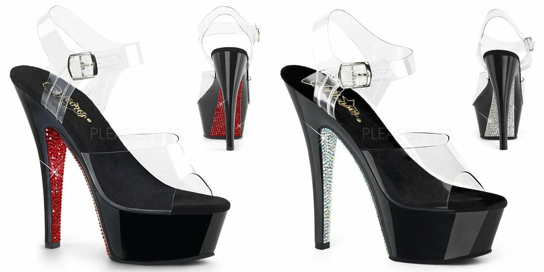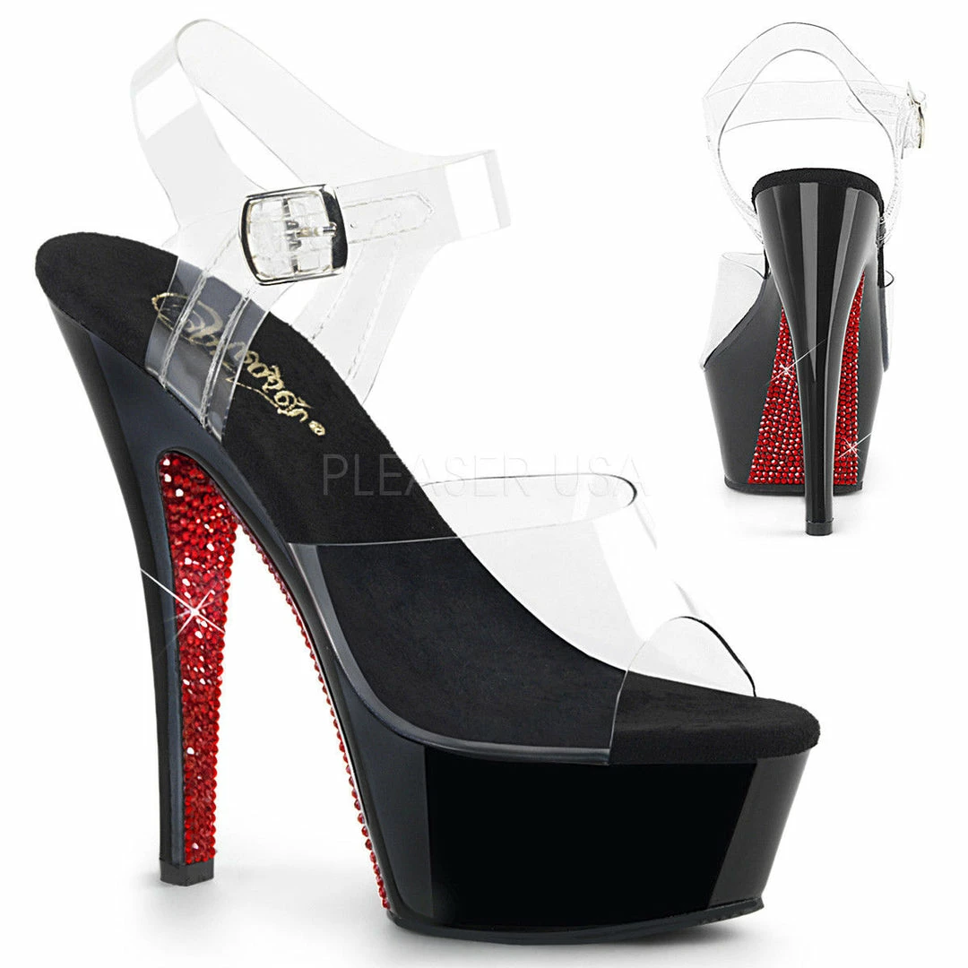 6″(152mm) Heel, 1 3/4″(44mm) Platform Ankle Strap Sandal w/ Contrast Rhinestones on the Platform Bottom