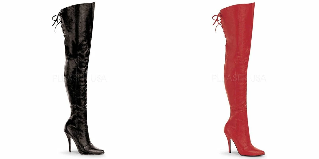 5″ (12.7cm) Heel, Thigh Boot Featuring Rear Lacing Detail 1/3 Inner Side Zipper