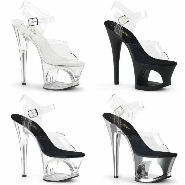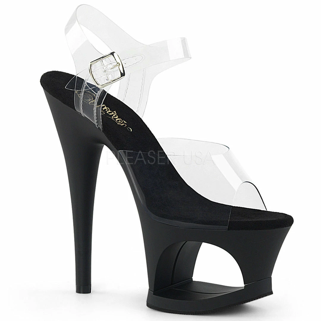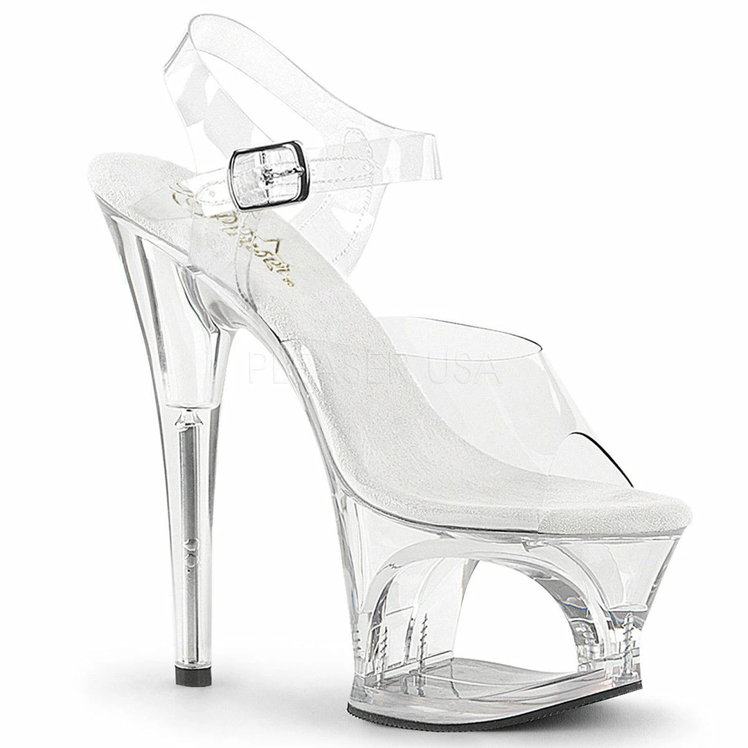 7″ (178mm) Heel, 2 3/4″ (70mm) Cut-Out Platform Ankle Strap Sandal w/ Chrome Plated Platform Bottom