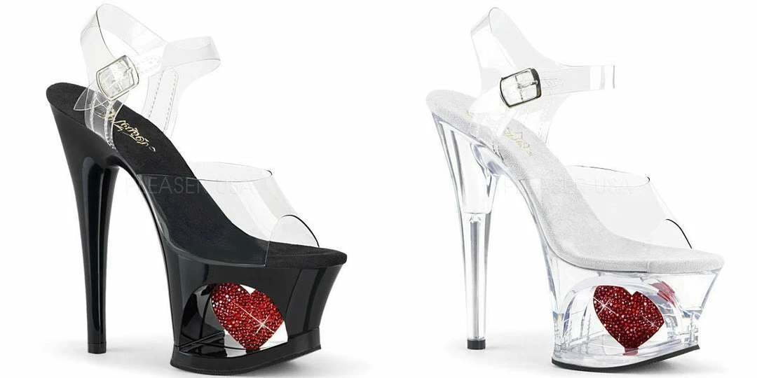 7″ (178mm) Heel, 2 3/4″ (70mm) Cut-Out Platform Ankle Strap Sandal Featuring Rhinestone Heart In the Platform
