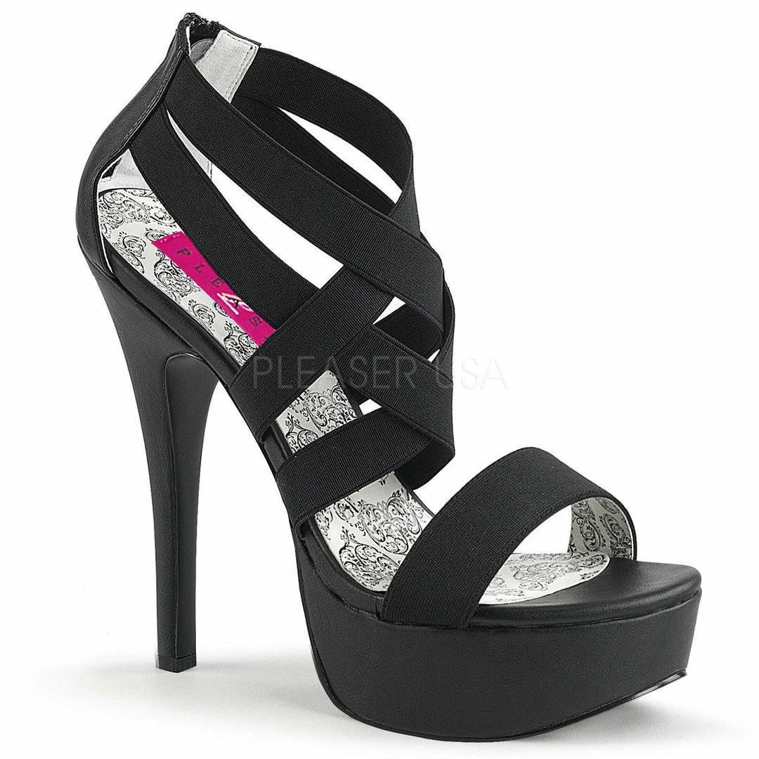 5 3/4″ (14.6cm) Heel, 1 3/4″ (4.5cm) Platform Cross Close Back Peep Toe Sandal, Back Zip – WIDE WIDTH