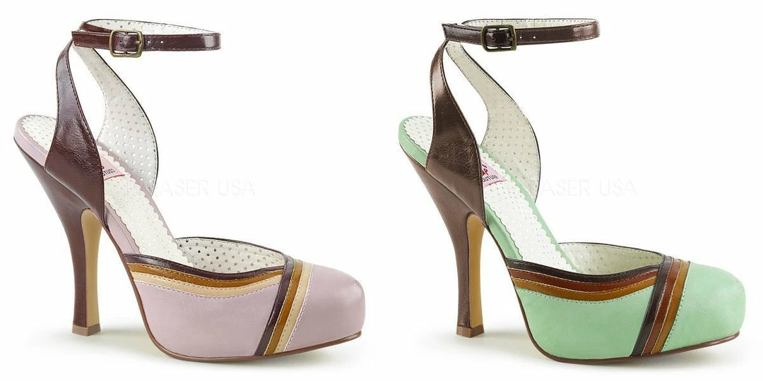 4 1/2″ (114mm ) Heel, 3/4″ (19mm) Hidden Platform Closed Toe Ankle Strap Sandal Featuring Tri-Color Trim
