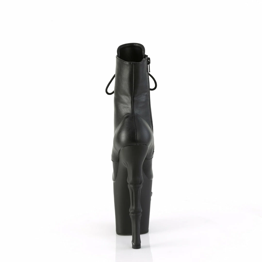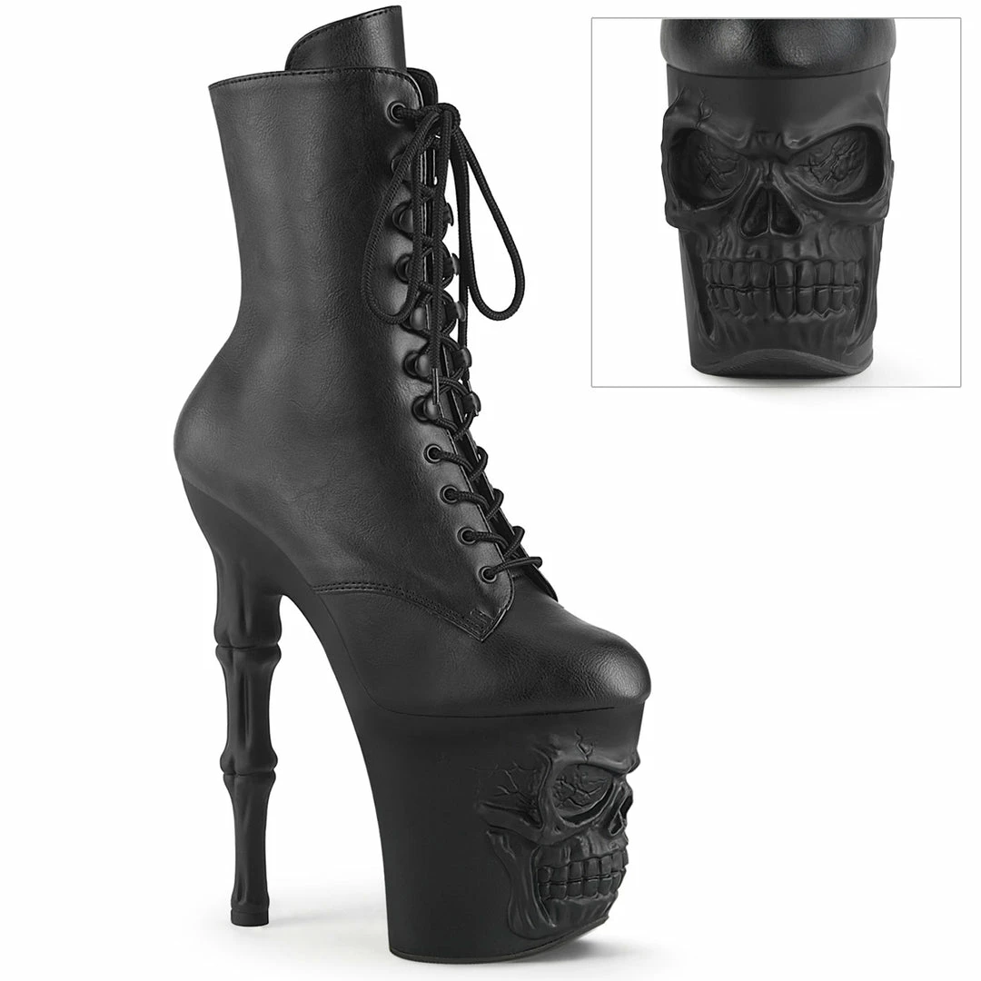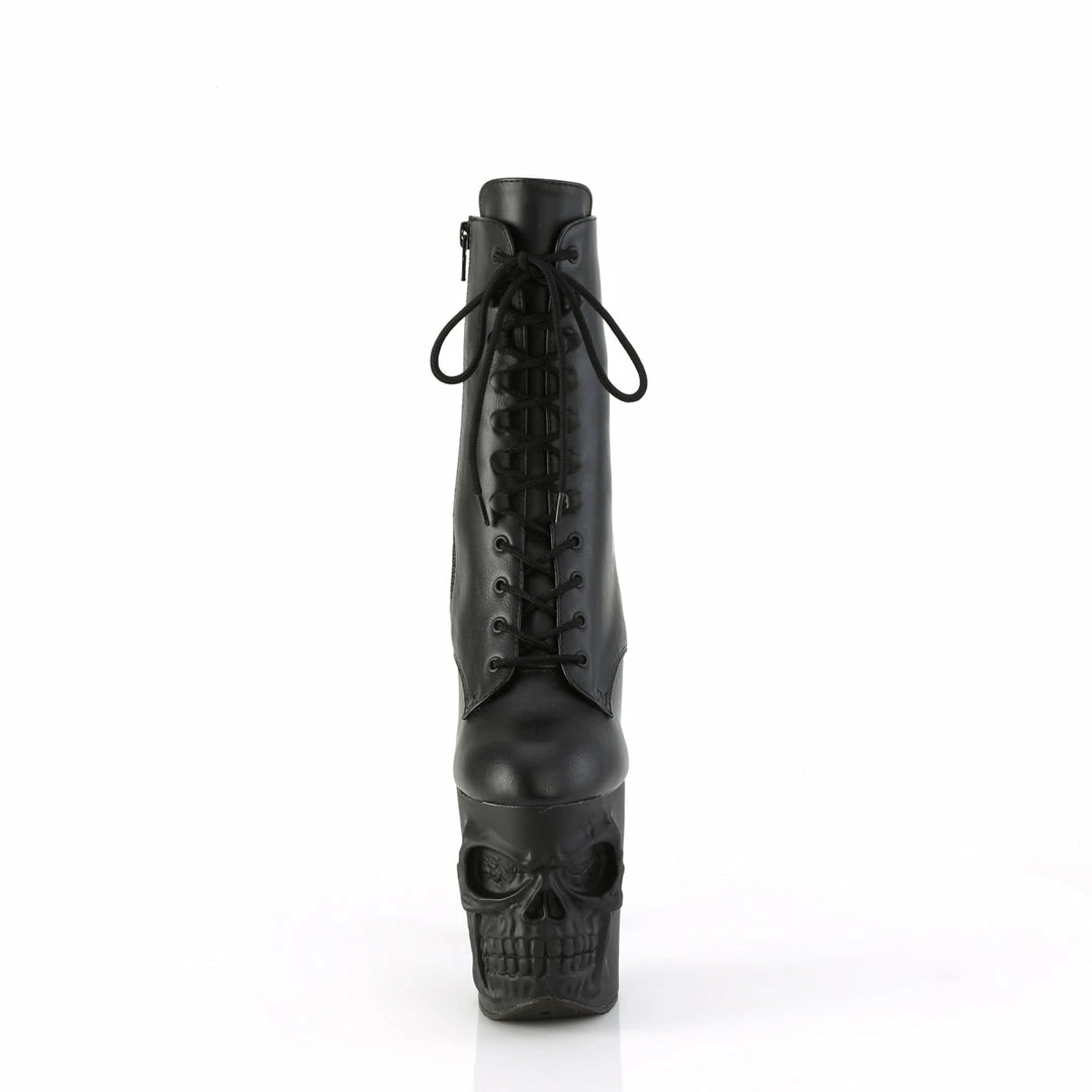 8″ (200mm) Finger Bone Heel, 4″ (100mm) Skull Sculpted Platform Lace-Up Front Ankle Boot, Inner Side Zip Closure