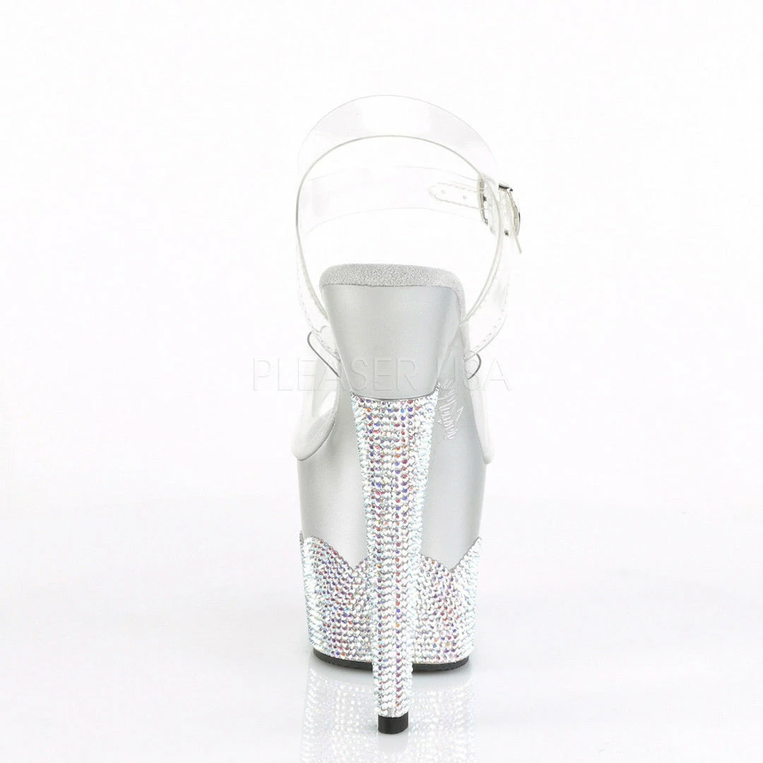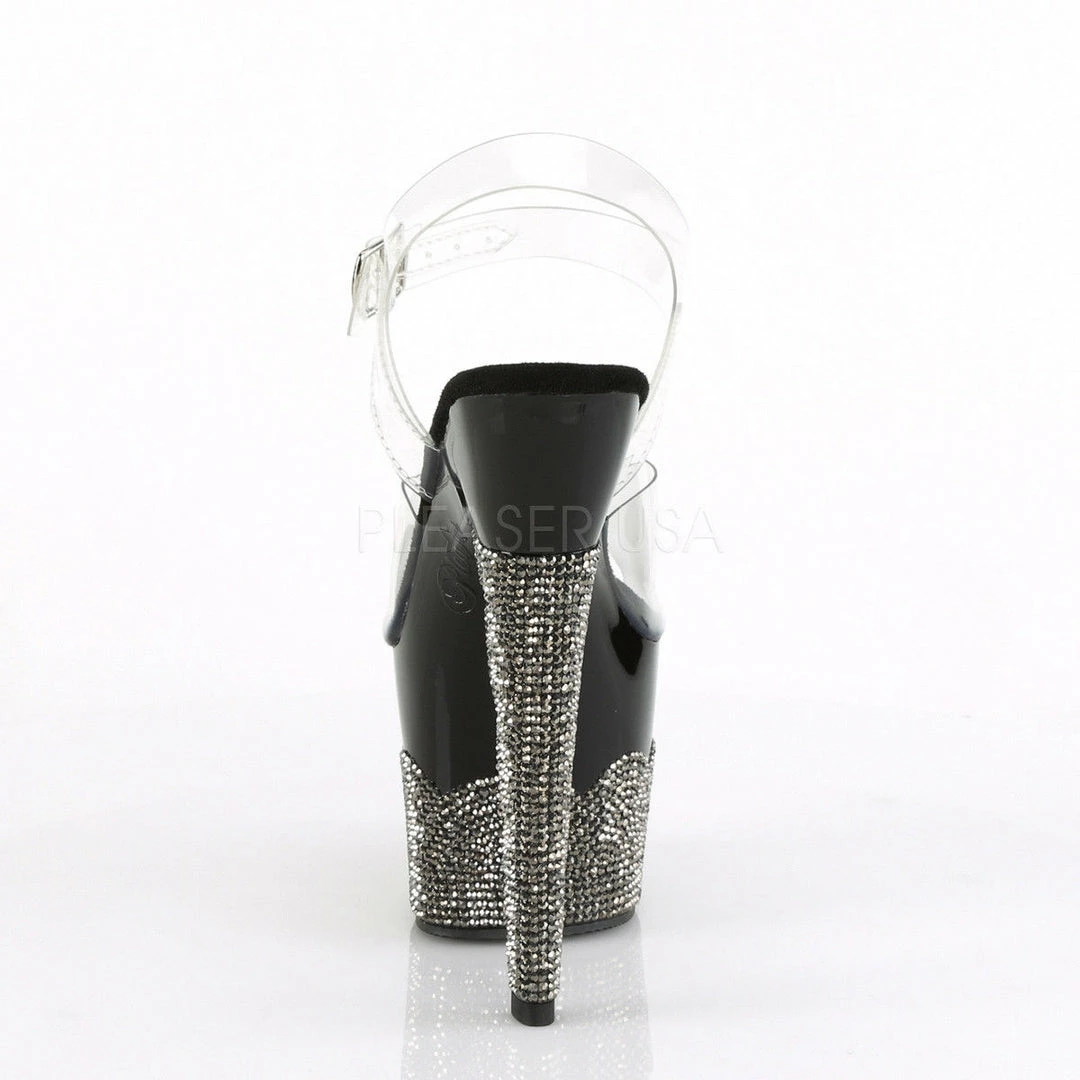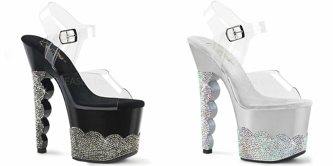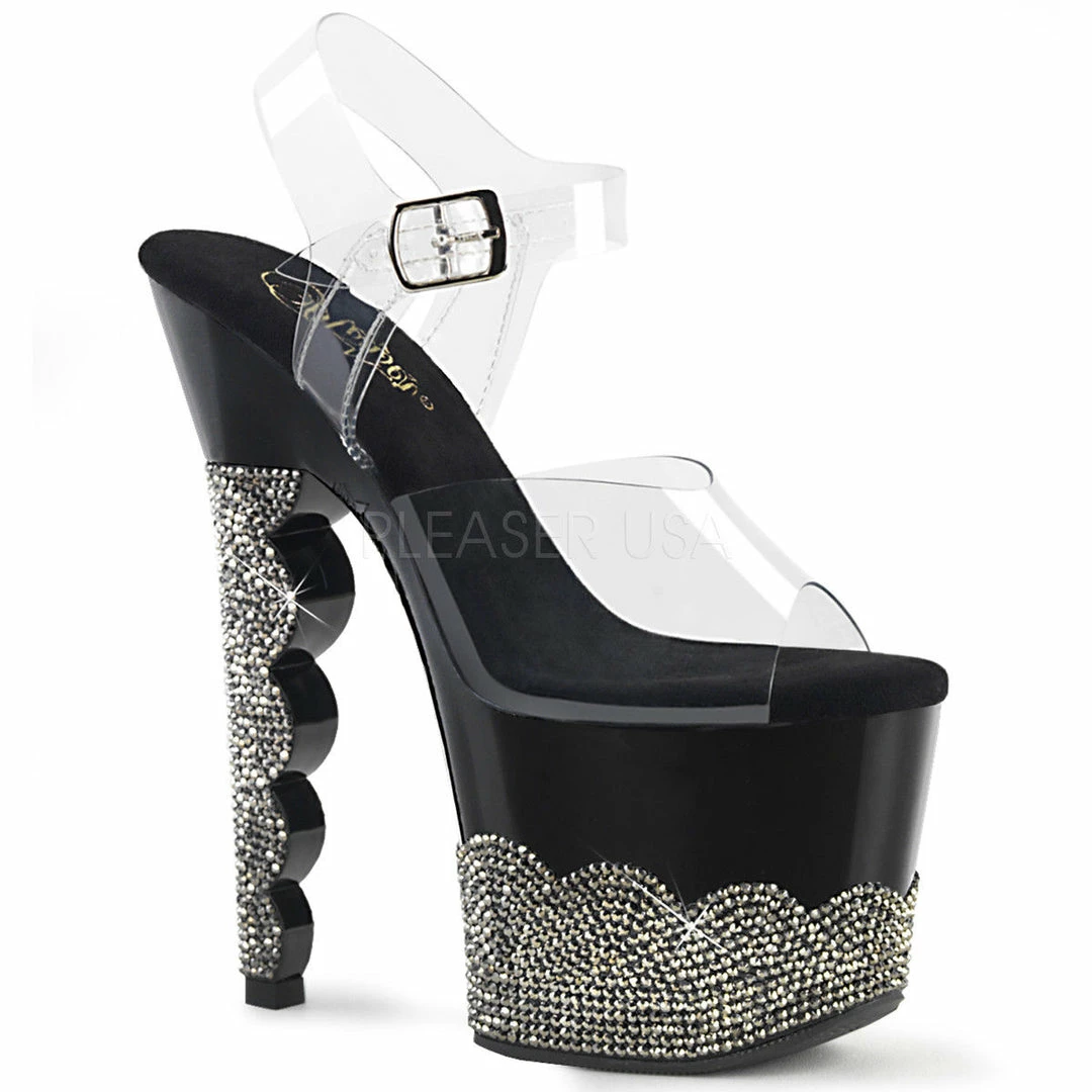 7″ (178mm) Scalloped Heel, 3 1/4″ (83mm) Platform Ankle Strap Sandal Featuring Rhinestone Encrusted Heel & Lower Platform w/ Scalloped Edging