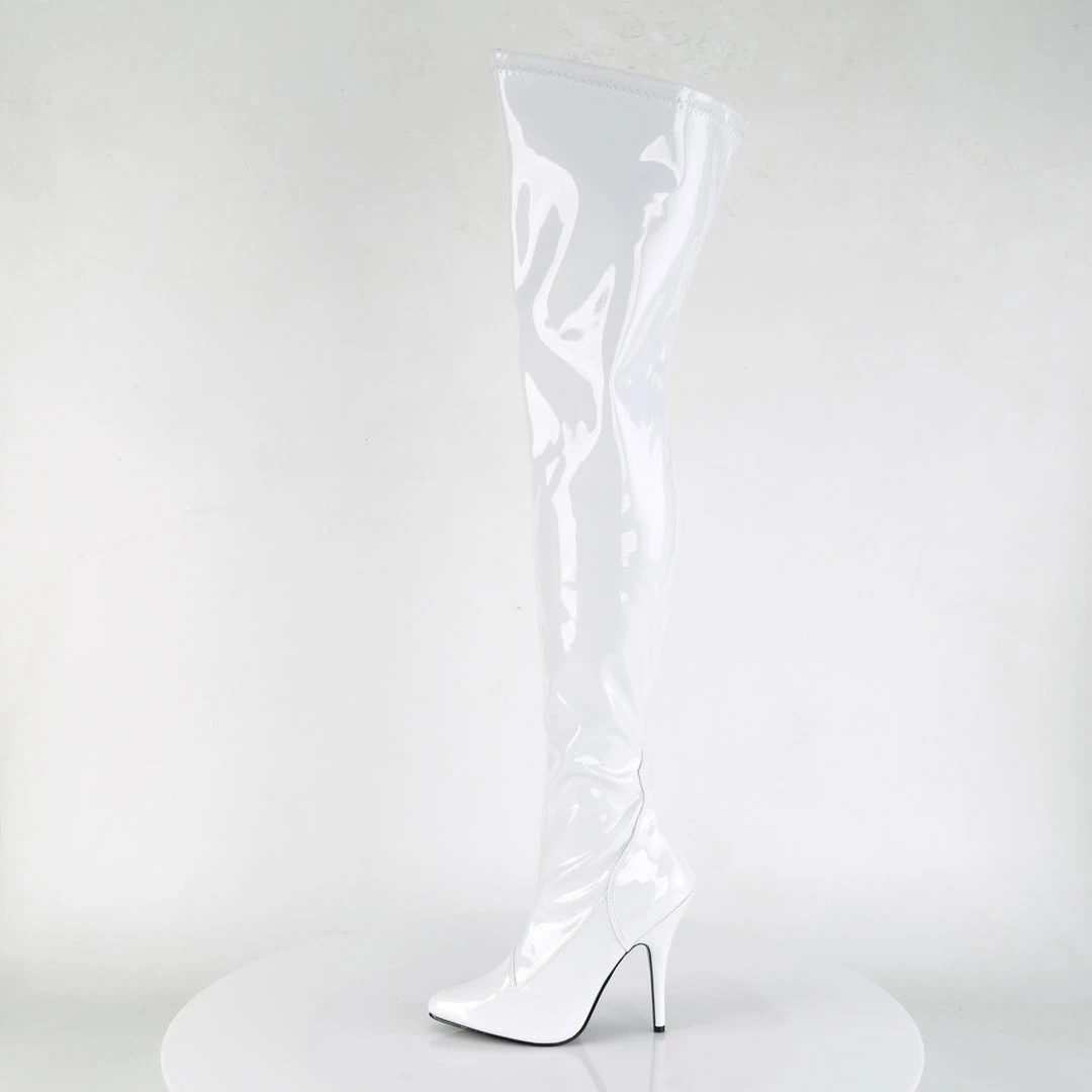 5″ (12.7cm) Heel Plain Stretch Thigh Boot, Full Inner Side Zipper