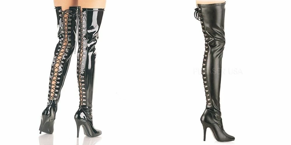5″ (12.7cm) Heel Open Back D-Ring Stretch Thigh Boot, Full Inner Side Zipper